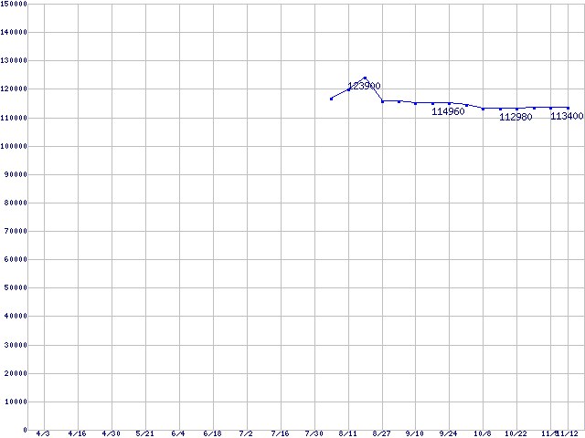 | LGA 775 (FC-LGA4,FSB 800MHz,L2 512KB,L3 2MB,Hyper-Threading,Gallatin)の最安値推移 |