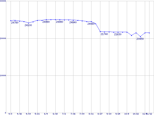 | Socket 478 (FC-PGA2,FSB 533MHz,L2 512KB,Hyper-Threading,Northwood)の最安値推移 |