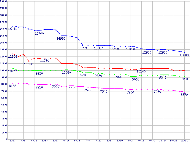 | [↑前グラフ]: | MaXLine Plus II (7200rpm,8MB,SerialATA/150,FDB)の最安値推移 |