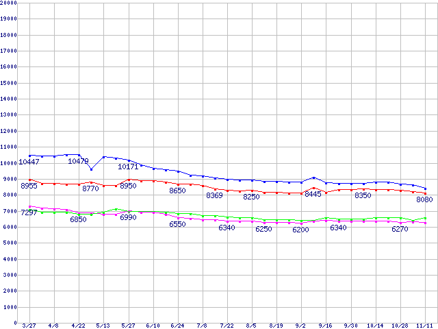 | [↑前グラフ]: | DiamondMax Plus 9 (7200rpm,8MB,UltraATA/133,FDB)の最安値推移 |