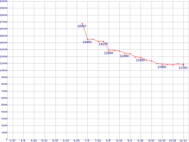 | [↑前グラフ]: | Fireball 3 (5400rpm,UltraATA/133,2MB,FDB)の最安値推移 |