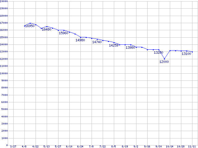 | [↑前グラフ]: | Barracuda 7200.7 SATA II (7200rpm,SerialATA II,8MB,80GB/Platter,FDB)の最安値推移 |