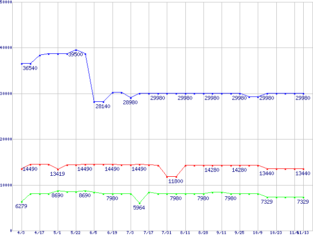 | ※製品名をクリックすると個別のグラフを表示します ※点線部は販売店が確認できなかった、または調査データがないことを示します | |
