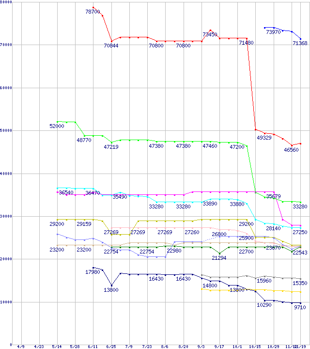 ※点線部は販売店が確認できなかった、または調査データがないことを示します