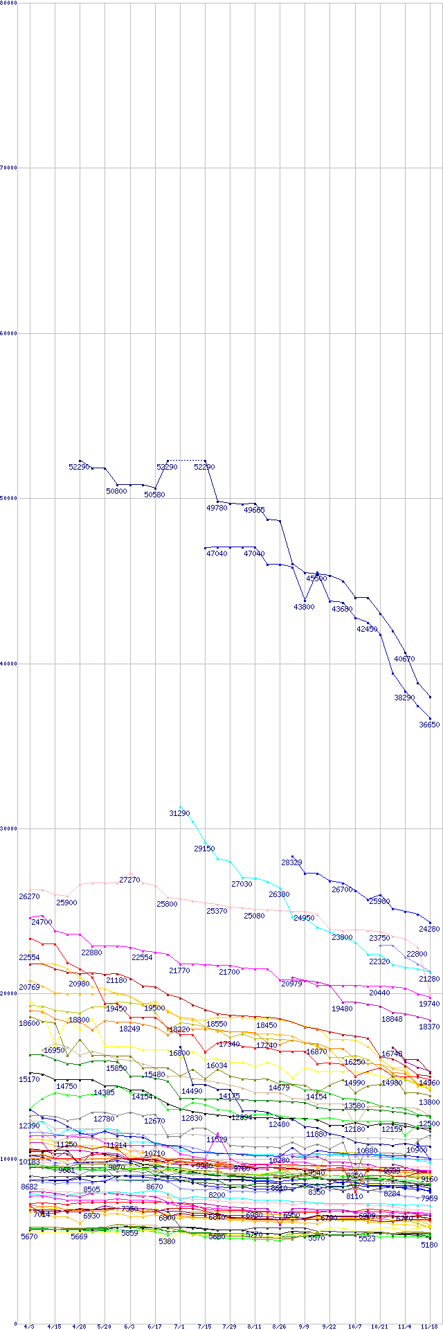 ※製品名をクリックすると個別のグラフを表示します ※点線部は販売店が確認できなかった、または調査データがないことを示します |