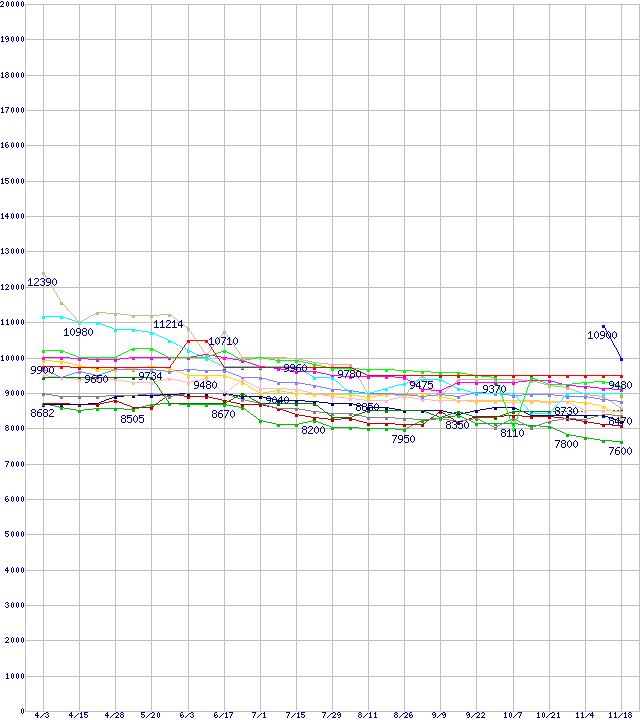 | [↑前グラフ]: | HDD 80GB~100GB未満の最安値推移 |