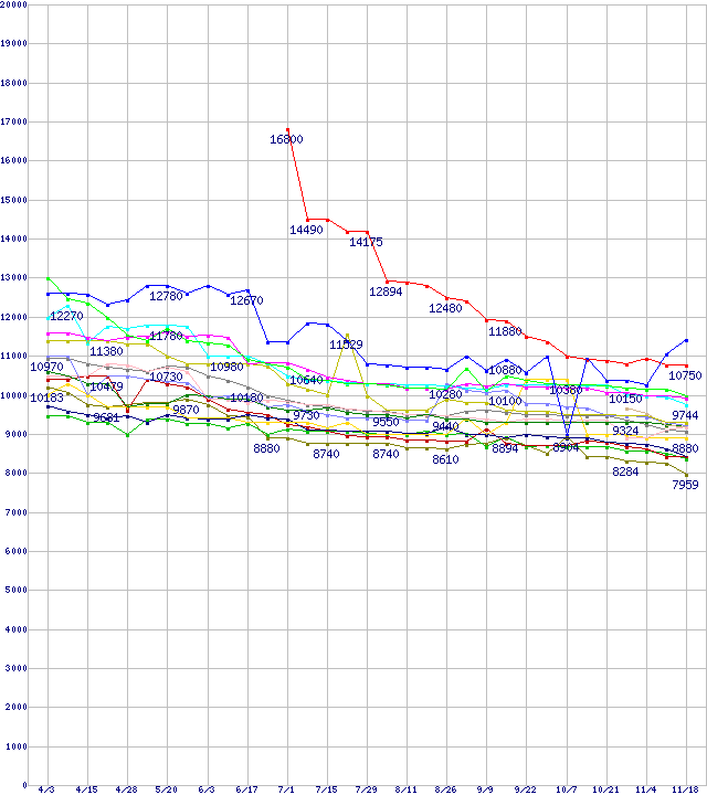 | [↑前グラフ]: | HDD 100~160GB未満の最安値推移 |