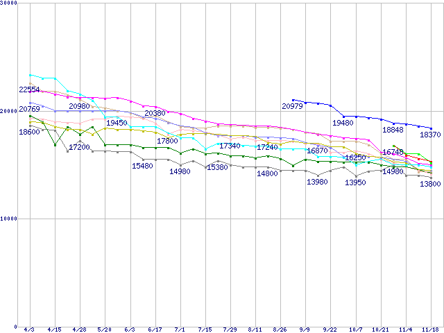 | [↑前グラフ]: | HDD 200~250GB未満の最安値推移 |