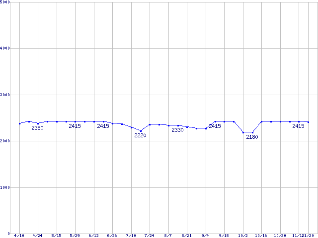 | [↓次グラフ]: | メモリ主要製品(最安値5千円未満)の最安値推移 |