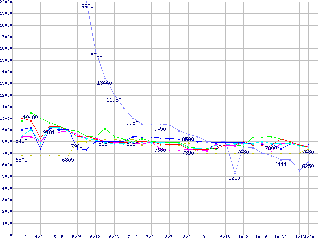 | [↓次グラフ]: | メモリ主要製品(最安値1万円以上)の最安値推移 |