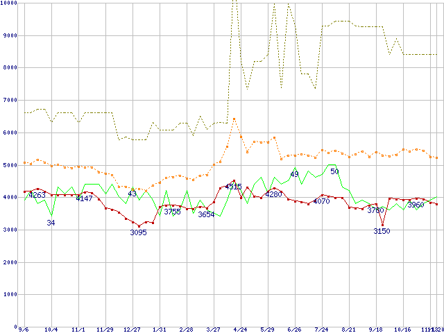| PC2100 DDR SDRAM 256MB(CL2.5)の価格推移 |
