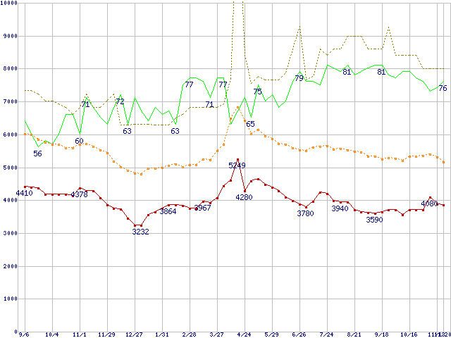 | PC3200 DDR SDRAM 256MB(CL3)の価格推移 |