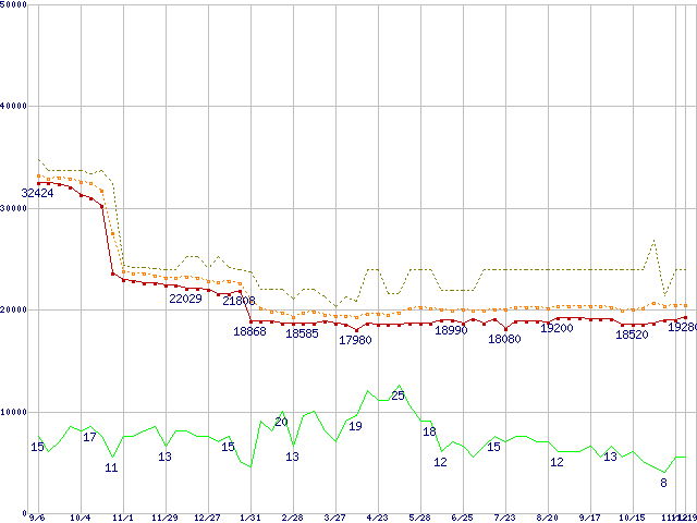 | ※このグラフは過去のデータも税率5%相当に調整した税込み相当額のグラフです。 税率変更や、総額表示方式導入(2004年4月)の影響は除いています。 | |||||||||||||||