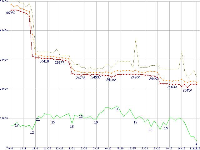 | ※このグラフは過去のデータも税率5%相当に調整した税込み相当額のグラフです。 税率変更や、総額表示方式導入(2004年4月)の影響は除いています。 | |||||||||||||