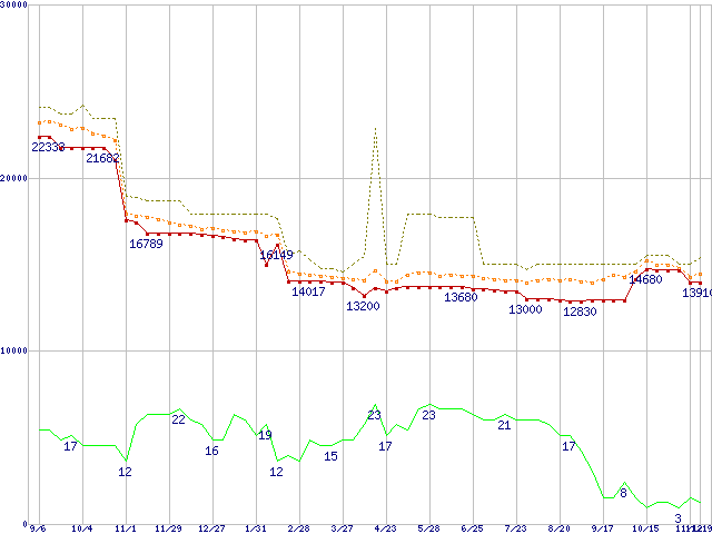 | Athlon XP 2800+ (2.08GHz) リテールパッケージの価格推移 |