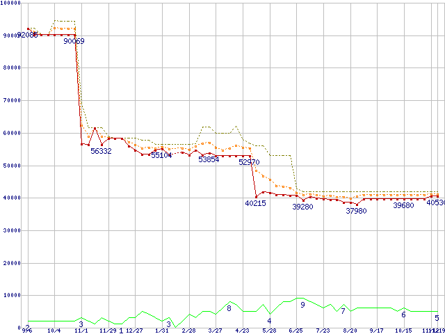 | Opteron 244(1.8GHz) リテールパッケージの価格推移 |