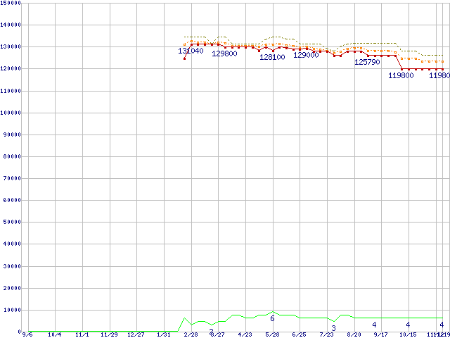 | Xeon 3.2GHz /L3 2MB(FSB533) リテールパッケージの価格推移 |