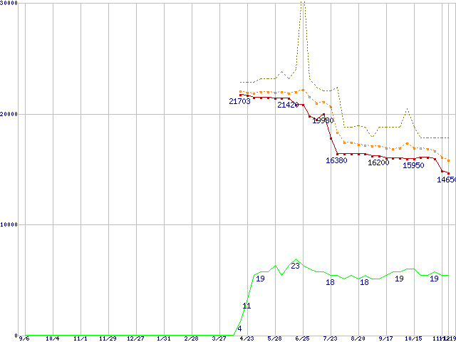 | Athlon 64 2800+(1.8GHz,L2 512KB) リテールパッケージの価格推移 |