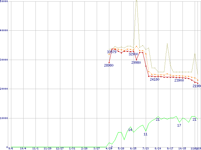 | Athlon 64 3200+(2.2GHz,L2 512KB) リテールパッケージの価格推移 |