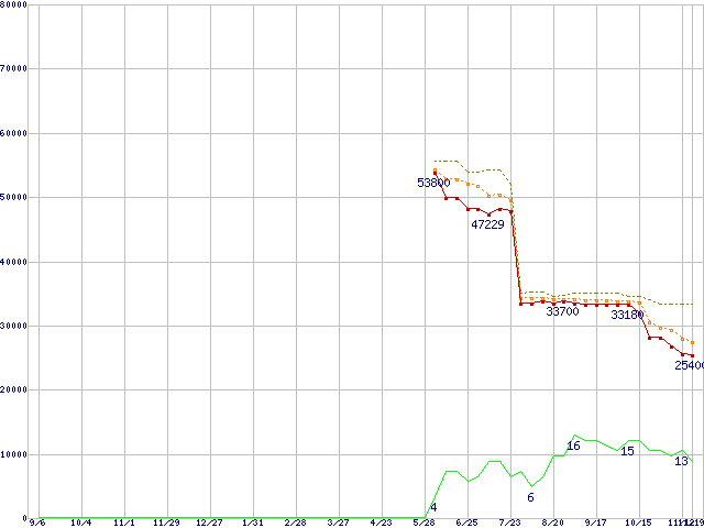 | Athlon 64 3400+(2.4GHz,L2 512KB) リテールパッケージの価格推移 |