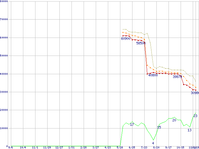 | Athlon 64 3500+(2.2GHz,L2 512KB) リテールパッケージの価格推移 |