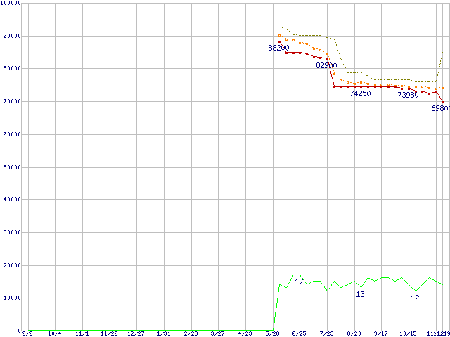 | Athlon 64 3800+(2.4GHz,L2 512KB) リテールパッケージの価格推移 |