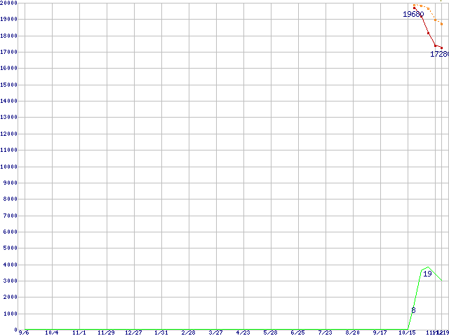 | Athlon 64 3000+(1.8GHz,L2 512KB,socket939) リテールパッケージの価格推移 |