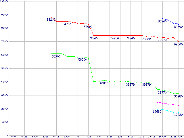 | [↑前グラフ]: | Socket 939 (PGA,FSB 1000MHz,L2 1MB)の最安値推移 |