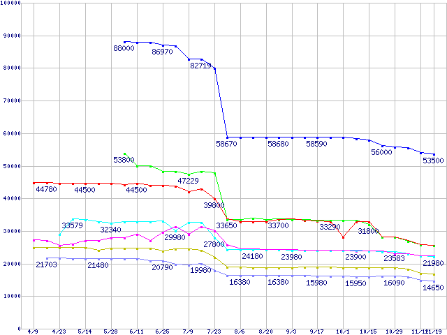| [↑前グラフ]: | Socket 939 (PGA,FSB 1000MHz)の最安値推移 |