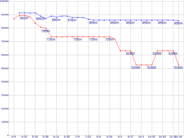 | Socket 940 (PGA,FSB 800MHz,L2 1MB)の最安値推移 |