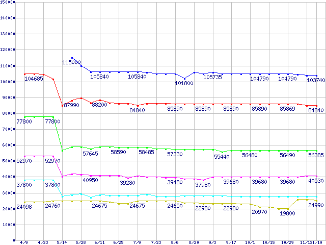 | [↑前グラフ]: | Socket 940 (PGA,FSB 800MHz,L2 1MB)の最安値推移 |