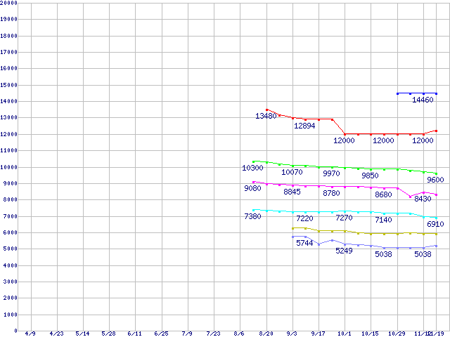 | [↑前グラフ]: | Socket 754 (PGA,FSB 800MHz,L2 256KB)の最安値推移 |