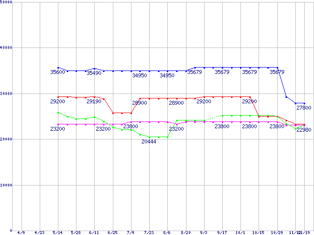 | ※製品名をクリックすると個別のグラフを表示します ※点線部は販売店が確認できなかった、または調査データがないことを示します | |