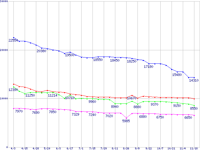 | [↑前グラフ]: | Deskstar 7K400 (7200rpm,SerialATA/150,FDB)の最安値推移 |