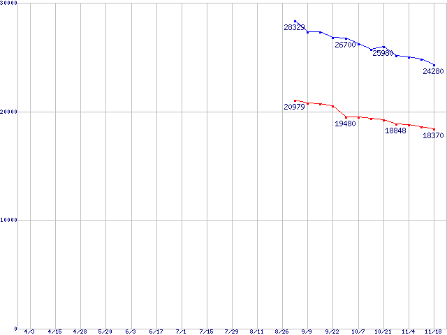 | [↑前グラフ]: | Deskstar 7K80 (7200rpm,UltraATA/100,FDB)の最安値推移 |