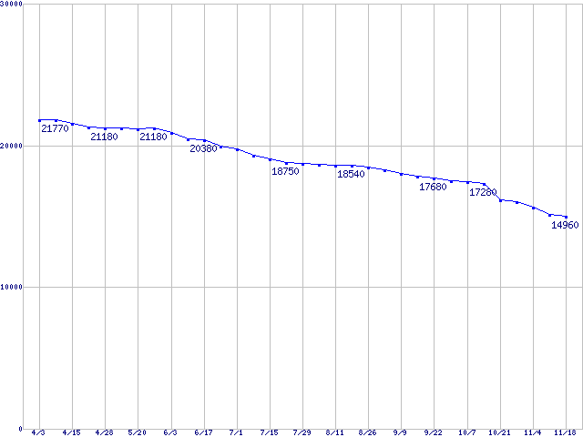 | [↑前グラフ]: | DiamondMax 10 (7200rpm,SerialATA II,FDB)の最安値推移 |