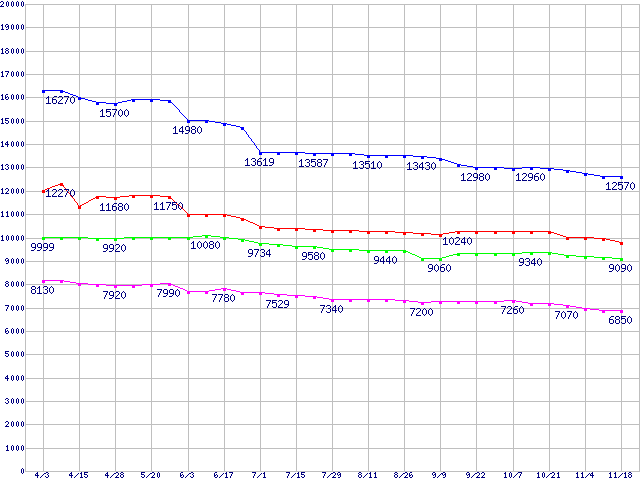 | [↑前グラフ]: | MaXLine Plus II (7200rpm,8MB,SerialATA/150,FDB)の最安値推移 |