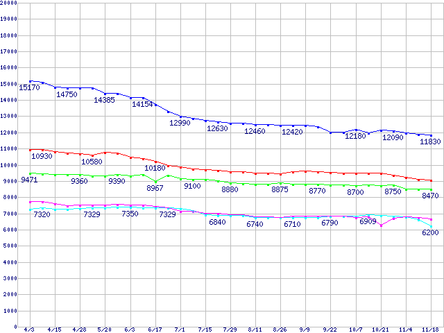 | [↑前グラフ]: | MaXLine Plus II (7200rpm,8MB,UltraATA/133,FDB)の最安値推移 |