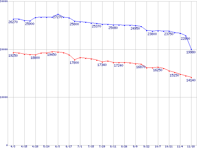 | [↑前グラフ]: | DiamondMax Plus 8 (7200rpm,2MB,UltraATA/133,FDB)の最安値推移 |