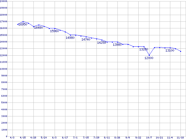 | [↑前グラフ]: | Barracuda 7200.7 SATA II (7200rpm,SerialATA II,8MB,80GB/Platter,FDB)の最安値推移 |