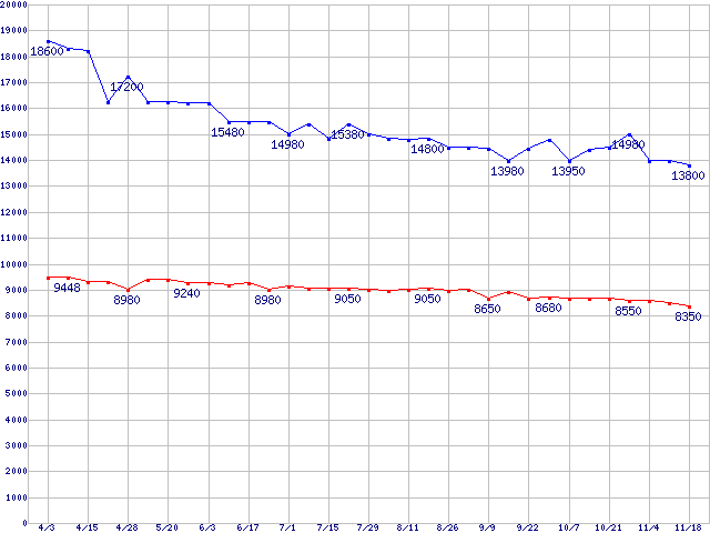 | [↑前グラフ]: | WD Caviar(Special Edition) (7200rpm,UltraATA/100,8MB)の最安値推移 |