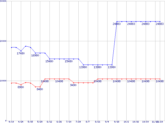 | [↑前グラフ]: | PC4000(DDR500) DDR SDRAM DIMMの最安値推移 |