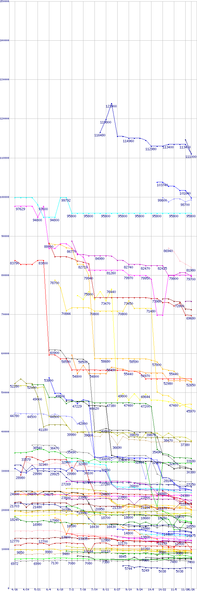 ※製品名をクリックすると個別のグラフを表示します ※点線部は販売店が確認できなかった、または調査データがないことを示します |