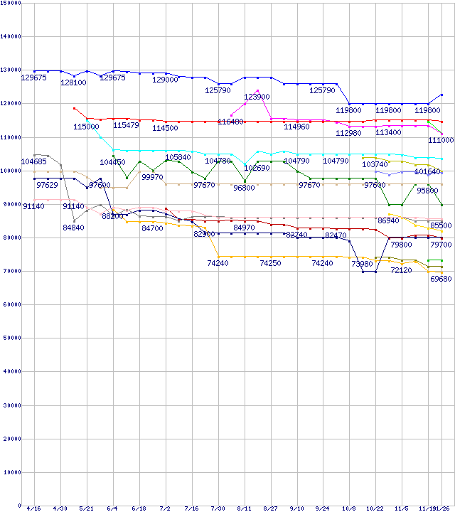 | [↓次グラフ]: | Socket 939・FSB 1000MHzの最安値推移 |