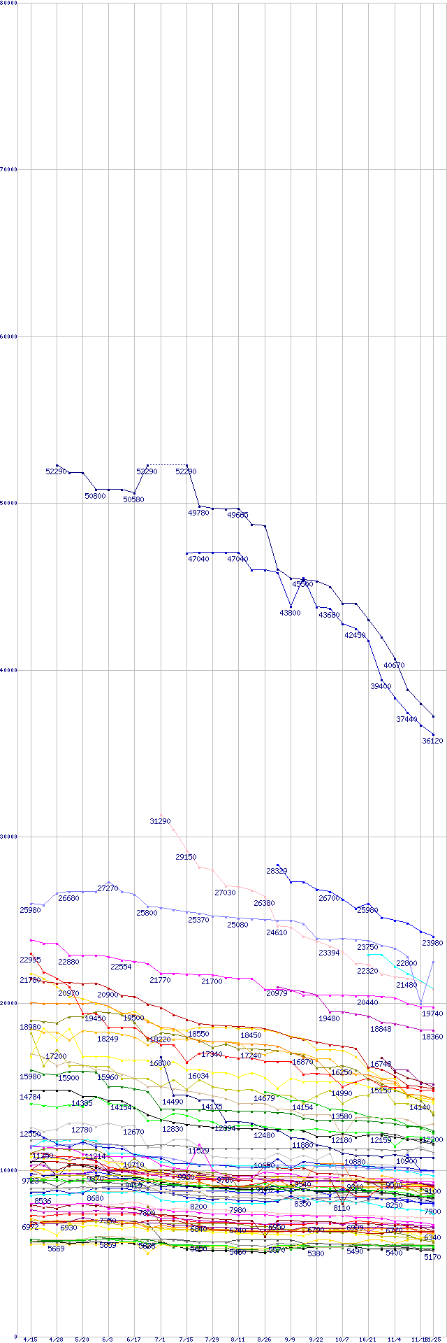 ※製品名をクリックすると個別のグラフを表示します ※点線部は販売店が確認できなかった、または調査データがないことを示します |
