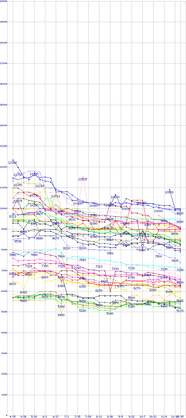 ※製品名をクリックすると個別のグラフを表示します ※点線部は販売店が確認できなかった、または調査データがないことを示します |