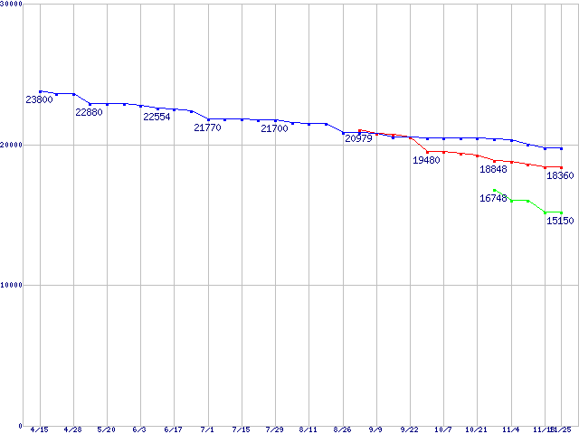 | [↓次グラフ]: | HDD主要製品(最安値2万円以上)の最安値推移 |
