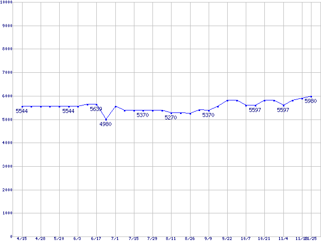 | [↓次グラフ]: | HDD 30GB~80GB未満の最安値推移 |