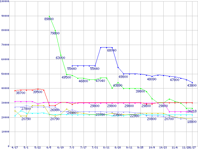 | [↑前グラフ]: | メモリ主要製品の最安値推移 |
