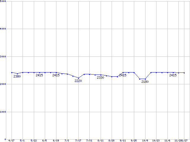 | [↓次グラフ]: | メモリ主要製品(最安値5千円未満)の最安値推移 |